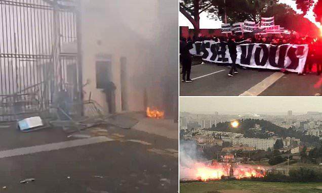 在大门倒下之后,大约有50-100名球迷冲入了基地,并不是全部人。面对试图用催泪弹等手段阻拦他们的安保力量,球迷投掷石块、燃烧瓶,释放烟花。据邻近住宅区的居民说,马赛训练基地就像发生了火灾。红色烟云升起,球迷释放的烟花甚至把一颗柏树点燃冒烟了。
