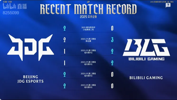 虎扑01月23日讯 今日赛事官方发布2026LPL第一赛段常规赛组内赛1月23日BLG对阵JDG数据前瞻